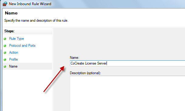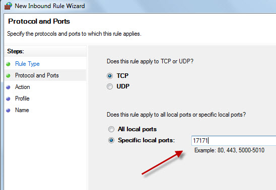 4. Follow the instructions in the New Inbound Rule wizard and enter 17171 as the port number of CoCreate License Server.