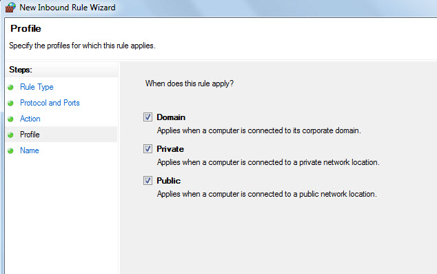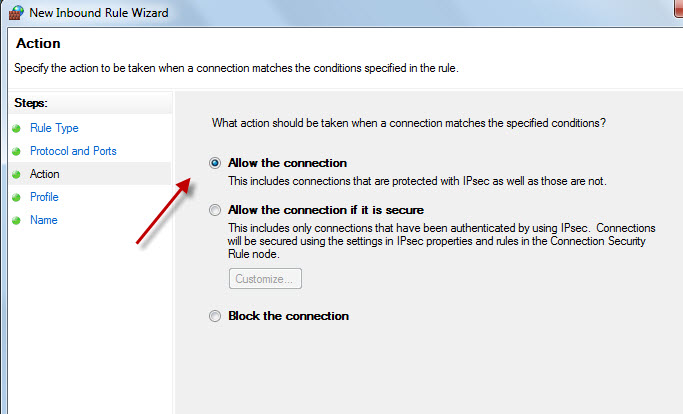 3. In the Windows Firewall with Advanced Security dialog box, in the left pane, click Inbound Rules, and then, in the right pane, click New Rule and select "Port"